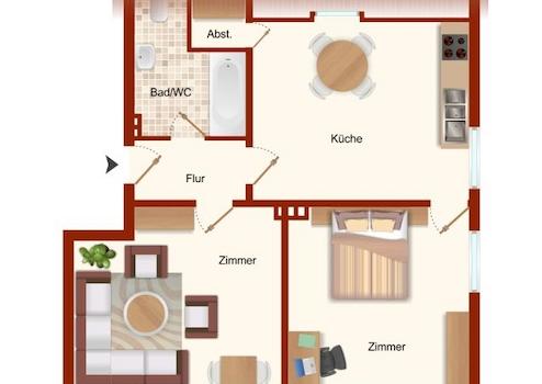 Zögern Sie nicht, Kontakt aufzunehmen und sich von den Vorzügen dieser Wohnung überzeugen zu lassen.Die Wohnung besteht aus Wohnzimmer, Schlafraum, Flur, Küche, Bad und hat eine Größe von ca. 55 m².