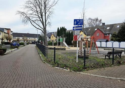 Ruhige Seitenstraße, familienfreundliche Nachbarschaft.