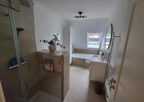 Modernes Badezimmer mit Regendusche und Badewanne