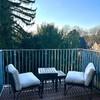 Die helle Ausleuchtung ergibt sich neben dem Dachfenster auch durch die große Gaube, von der aus man auf den Balkon gelangt. Der nach Südwesten ausgerichtete Balkon liegt rückseitig und somit ruhig zum Garten. Mit einer Fläche von knapp 4 m² bietet er Platz für einen kleinen Tisch und Stühle – der Blick kann hier ins Grüne schweifen.