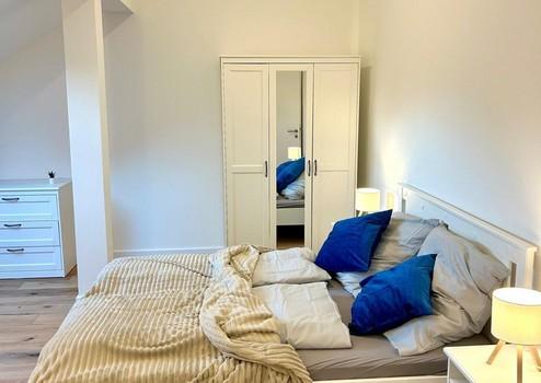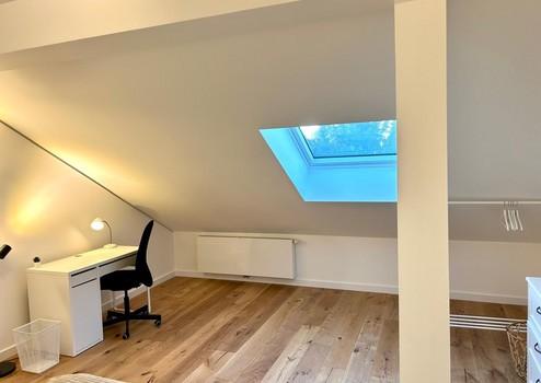 Der zweite große Raum (ca. 18,5 m²) bietet sich zur Nutzung als Schlafzimmer an und verfügt über ein großes Dachfenster. Auch das Schlafzimmer ist rückseitig zum Garten gelegen. Hier findet sich ausreichend Platz für Schränke und weiteren Stauraum.