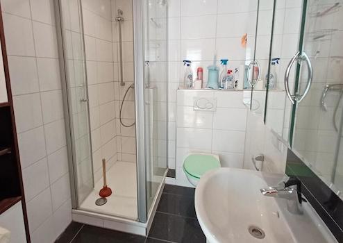 Das Obergeschoss verfügt über drei Wohnräume, wobei einer davon (Durchgangszimmer) auch als weitere Küche genutzt werden könnte, ein modernes Duschbad und ein Balkon.