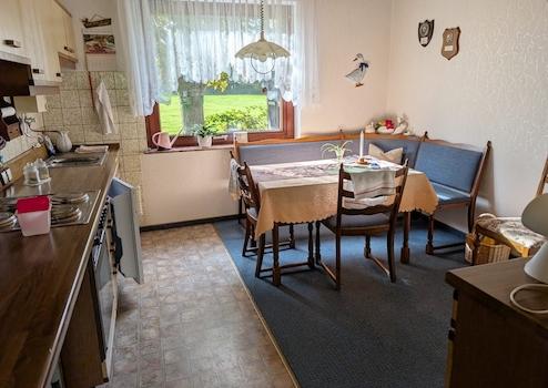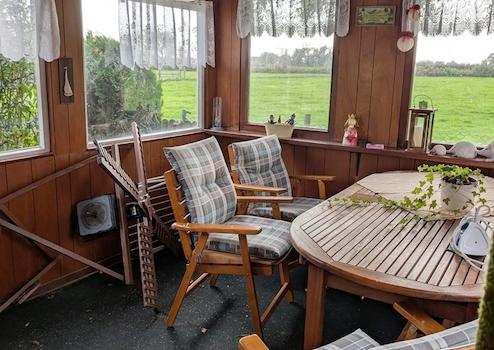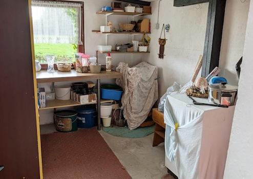 Der Anbau beherbergt heute das Familienbad und ein WC und wurde bislang für Hobbyzwecke genutzt. Darüber hinaus finden Bastler eine große Garage, die zusätzlichen Raum für Projekte bietet. Ein schönes Gartenhaus lädt zum Entspannen ein und bietet einen idyllischen Weitblick über Felder und Wiesen, während die Lage des Hauses direkt am Deich fast als Alleinlage bezeichnet werden kann.