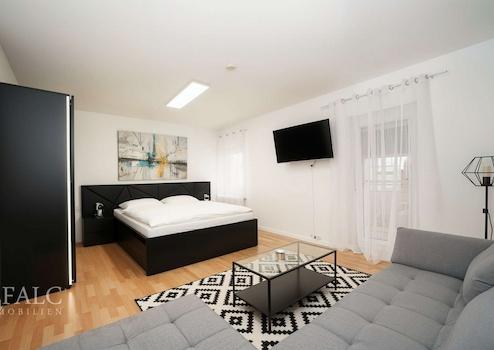 Entlang des Flures erreichen Sie das modern geflieste Badezimmer mit WC. Auf der linken Seite betreten Sie schließlich das Herzstück der Wohnung: den lichtdurchfluteten Wohn- und Schlafbereich. Von hier aus haben Sie direkten Zugang zum Balkon. Der perfekte Ort, um entspannte Stunden an der frischen Luft zu genießen.