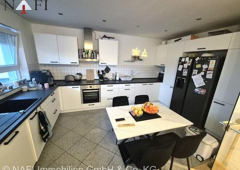 Im Ober- bzw. Dachgeschoss befindet sich eine 5 Zimmer-Maisonettewohnung. Auf der ersten Ebene befindet sich ein Wohnzimmer, ein Schlafzimmer, die Küche und ein WC. Alle Räume sind sehr gute und großzügig geschnitten und lichtdurchflutet. Vom Wohn- und Schlafzimmer aus haben Sie einen Zugang zum überdachten Balkon mit Blick in den Garten. Über eine offene Treppe gelangen Sie auf die zweite Ebene der Wohnung. Hier befinden sich drei weitere lichtdurchflutete Schlafzimmer und das große, moderne Tageslichtbad. Dieses ist mit einer Eckbadewanne, einer Eckdusche, einem großen Waschbecken und einem WC ausgestattet und wird somit allen Wünschen gerecht. Diese Wohnung ist derzeit für ca. 35.000 €/jährlich vermietet.