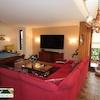 An den Eingangs- schließt sich der großzügig gestaltete Wohnbereich mit Küche, im halbrunden Erker gelegen Essensecke, Kamin- und Wohnzimmer an. Durch eine Öffnung in das I.OG und den dadurch entstehenden Luftraum ist dieses sehr hell und luftig. Im gesamten EG finden sich große Bodenfliesen aus rustikaler Keramik, handgeformte flämische Keramikfliesen und rustikale sandgestrahlte Eichenbalken, z.T. mit schmiedeeisernen Elementen verziert.