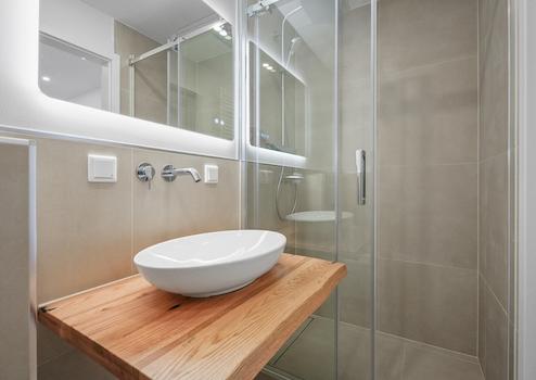 - saniertes Badezimmer mit begehbarer Rain Shower Dusche mit Glaselementen