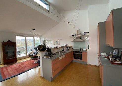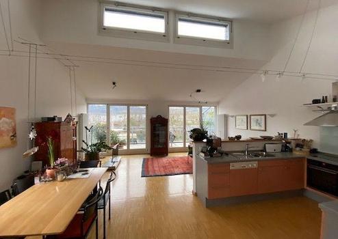 So geniessen Sie in einer Traumlage und Blick in die Schweiz die vier Jahreszeiten und insbesondere den Frühling und Sommer am Besten. Diese Wohnung besticht durch ihre Grösse und einmalige Lage mit mediterranem Flair und dem besonderen Schnitt mit teilweise Deckenhöhen von bis zu 5 Meter. Die Wohnung ist überall Lichtdurchflutet und sehr hell. Es sind 2 Balkone (einer davon mit elektrischer Markise) vorhanden, eine offene grosse Küche, eine Speisekammer, ein Flur, ein Treppenhaus DREI Bäder mit Dusche & Badewanne, drei Schlafzimmer, eine Galerie und das geräumige sehr frei und offen wirkende Wohnzimmer. Die beiden Südbalkone sine einmal ca. 20 m2 und einmal 15 m2 gross.