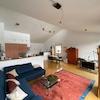 Die Wohnung besteht aus 3 Bädern, 2 Balkonen, 3 Schlafzimmer, 1 grosses Wohnzimmer mit offener Küche und teilweise bis zu 5 Metern Deckenhöhe sowie Fluren, Treppenhaus und einer Speisekammer.