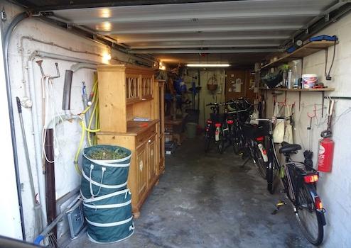 Das 314m² große, nach Süd-Westen ausgerichtete Grundstück grenzt seitlich an Nachbarschaftsgrundstücke und am hinteren Gartenende an den "Hülsdonker Flutgraben" (eine Regenwasser abführende Rinne der LINEG); hier existiert am rechten Uferstreifen zusätzlich - als Verlängerung des Gartens - eine gepachtete Fläche von 136m² zur gärtnerischen Nutzung, sodass sich eine nutzbare Gesamtfläche von 450m² ergibt.