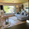 Die offene Architektur mit lichtdurchfluteten Räumen, Eichenparkett und einem beidseitigen Holzkamin schafft ein stilvolles Ambiente.