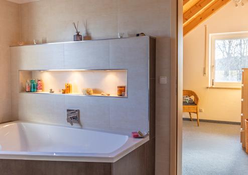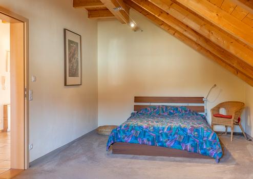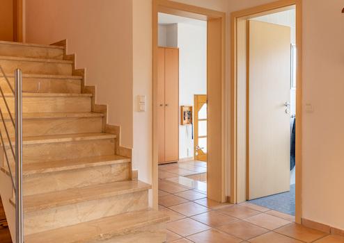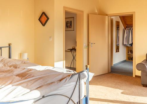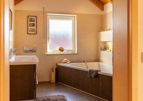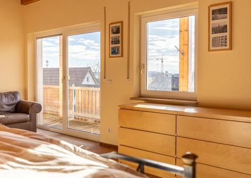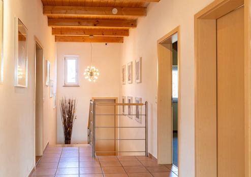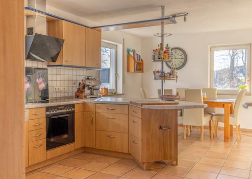 Der großzügige Wohn- und Essbereich mit Zugang zur Terrasse bildet das Herzstück des Hauses. Die offene Küche bietet ausreichend Platz für den Alltag und gemeinsames Kochen. Insgesamt stehen fünf gut geschnittene Schlafzimmer zur Verfügung, die flexibel als Schlaf-, Arbeits- oder Gästezimmer genutzt werden können. Besonders komfortabel ist das Elternschlafzimmer mit separater Ankleide. Eine Fußbodenheizung sorgt im gesamten Wohnbereich für ein behagliches Raumklima. Das Haus ist voll unterkellert und bietet neben Stauraum einen großzügigen Hobbykeller mit vielfältigen Nutzungsmöglichkeiten. Balkon und Terrasse laden zum Entspannen ein und bieten einen wunderschönen Blick in die Umgebung. Abgerundet wird das Angebot durch eine Doppelgarage.