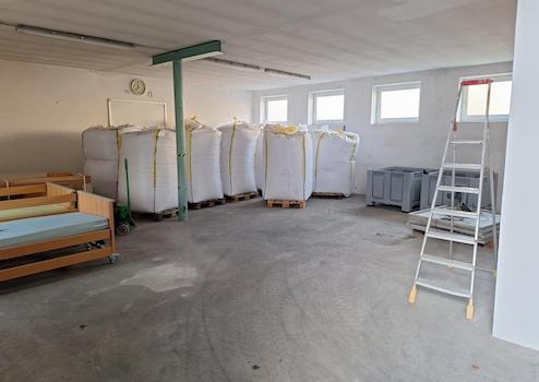 Es gehören außerdem noch Lagerräume im Nebengebäude (185 m²) und eine Lagerhalle (905 m²) dazu.