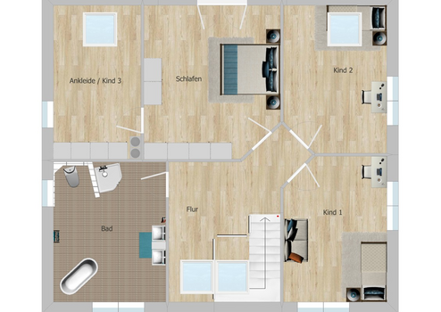 Eine elegante Treppe führt Sie auf die Galerie im Obergeschoss, die mit viel Tageslicht überzeugt. Von hier erschließen sich alle Räume der Etage: Drei Schlafräume mit bis zu 4m hohen Decken, ein großes Ankleidezimmer, sowie das großzügige Masterbad. Alle Schlafräume können mithilfe einer modernen Daikin-Klimaanlage im Sommer bei Bedarf angenehm gekühlt oder im Winter energiesparend geheizt werden. Dank der großzügigen Gestaltung lässt sich die Galerie individuell nutzen, zum Beispiel für eine Lese- oder Sitzecke.