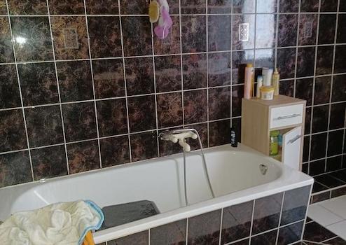 Im Tageslicht-Bad befindet sich eine Wanne mit integrierter Dusche, erneuertes WC sowie neuen Grohearmaturen. Der Boden ist mit schwarz-grauen Fliesen, die Wände mit weißen Fliesen versehen. Der Küchen- und Dielenboden ist mit weißen -grauen Kunststoffböden ausgestattet, die den modernen und freundlichen Eindruck dieser Wohnung unterstreichen. Die Nische in der Diele eignet sich hervorragend für einen Einbauschrank. Es gibt ein riesiges Wohnzimmer, das problemlos abzuteilen ist, um ein Schlafzimmer mehr zu haben.