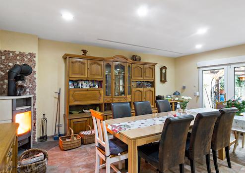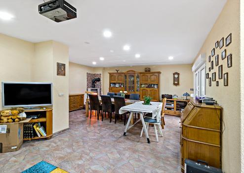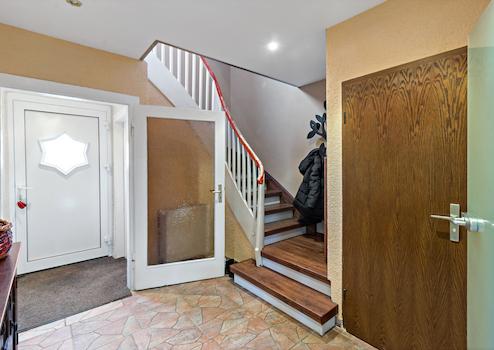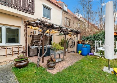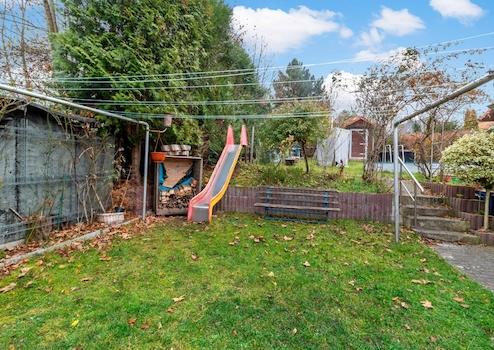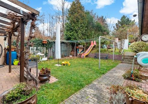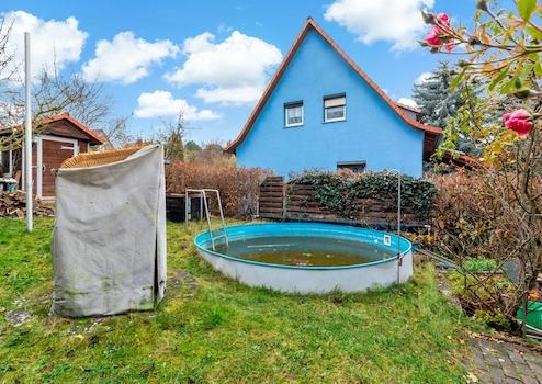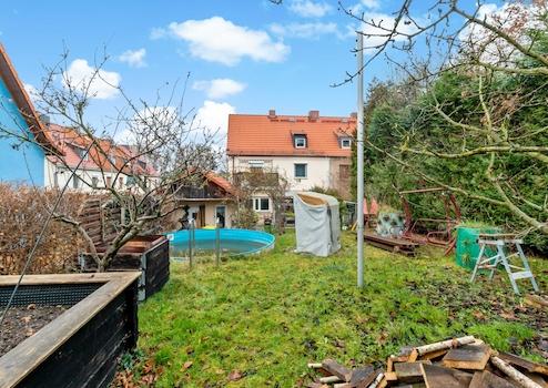 Der Außenbereich überzeugt mit einer einladenden Terrasse, einem gepflegten Garten mit Pool sowie einem praktischen Schuppen für Werkzeuge und Gartengeräte. Drei PKW-Stellplätze im Freien runden das Angebot ab.