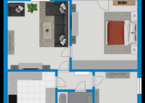 Im Dachgeschoss öffnet sich Ihnen eine besonders charmante 2-Raumwohnung, die mit ihrer gemütlichen Geborgenheit und den warmen Dachschrägen sofort ein Gefühl von Zuhause vermittelt. Großzügige Fenster lassen viel Tageslicht herein und schaffen eine helle, freundliche Atmosphäre – ideal für alle, die einen Rückzugsort mit besonderem Charakter suchen. Auch hier sorgt eine integrierte Einbauküche dafür, dass es Ihnen an nichts fehlt.