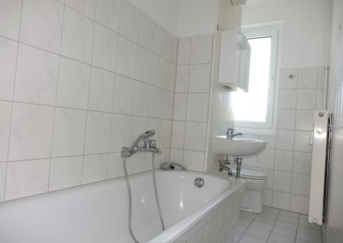Biete eine vollsanierte 2-R-WE mit begehrtem Grundriss im 1. Geschoss (Hochparterre). Alle Zimmer sind mit Laminat und/oder Fliesen ausgestattet. Wände und Decken sind tapeziert und geweißt. Die Wohnung ist mit einer modernen Einbauküche mit Umluftherd und Ceranfeld, Spüle und diversen Schränken gegen eine Mehrmiete von € 45,00/mtl. ausgestattet. Die Bilder zeigen eine vergleichbare Musterwohnung. Nur 6 ruhige Parteien im Treppenaufgang.