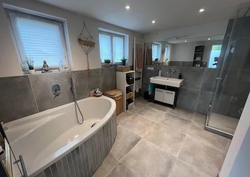 Terrasse, Garten, Keller, Vollbad, Duschbad, Einbauküche, Gäste-WC, Laminat, Fliesen