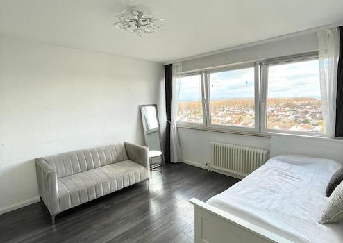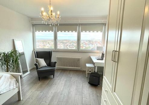Diese attraktive 5-Zimmer-Wohnung im Wohngebiet Buch in Bietigheim-Bissingen liegt im 12. Obergeschoss und wird provisionsfrei und ohne Makler zum Verkauf angeboten. Sie ist derzeit noch vermietet – ideal nutzbar als Kapitalanlage oder für den zukünftigen Eigenbedarf. Der lichtdurchflutete Grundriss überzeugt neben drei Schlafzimmern mit zwei Balkonen, einer voll ausgestatteten Einbauküche, einem separaten Gäste‑WC, einem Vollbad, Handwaschbecken und Badschränken sowie einem geräumigen Abstellraum und einem separaten Kellerraum. Ein Stellplatz in der Tiefgarage kann zusätzlich für 15.000 € erworben werden.