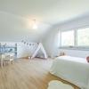 Im Inneren erwartet Sie eine funktionale und gut nutzbare Raumstruktur. Der großzügige Wohnbereich ist lichtreich gestaltet und bietet direkten Zugang in den Garten. Ergänzt wird das Erdgeschoss durch eine freundlich gestaltete Küche. Das modernisierte Badezimmer sowie das ebenfalls erneuerte Gäste-WC sorgen für zeitgemäßen Komfort. Im Obergeschoss stehen ein Elternschlafzimmer und ein weiteres Zimmer zur Verfügung, das sich ideal als Kinder-, Arbeits- oder Gästezimmer nutzen lässt.