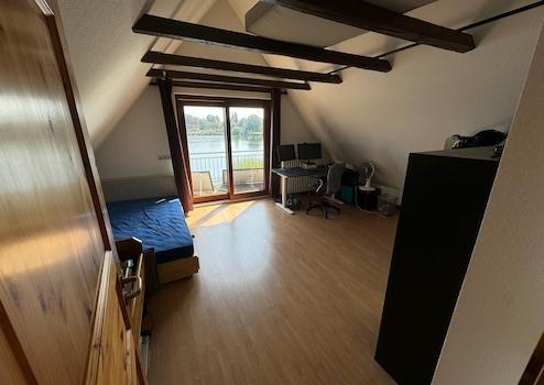 Die obere Wohnung bietet Ihnen ca. 47 m² Wohnfläche. Besonderes Highlight ist das große Wohn- und Esszimmer mit dem großen Süd-Balkon und dem Ausblick über den See in Richtung Plöner Schloss.