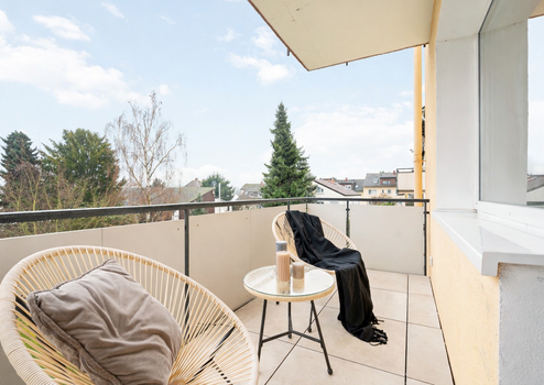 Herzstück der Wohnung ist das großzügige Wohnzimmer, das durch große Fensterflächen besonders lichtdurchflutet ist und direkten Zugang zum Süd-West-Balkon bietet. Hier lassen sich sonnige Nachmittage und entspannte Abende genießen. Alle Räume der Wohnung sind vom zentralen Flur aus erreichbar, wodurch eine klare Raumstruktur entsteht.