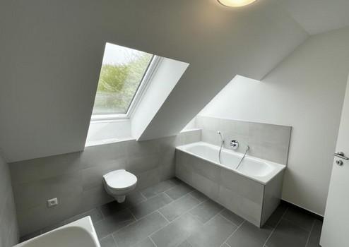Der Grundriss ist klar strukturiert und großzügig ausgelegt. Im unteren Geschoss stehen Ihnen zwei abgeschlossene Zimmer, ein großer offener Wohn-/Essbereich mit Küche, ein modernes, helles Badezimmer mit Badewanne sowie ein zweites Bad mit Dusche zur Verfügung. Große Fensterflächen sorgen in allen Räumen für sehr gute Belichtung.
