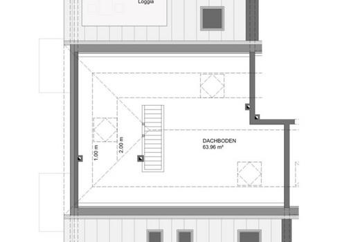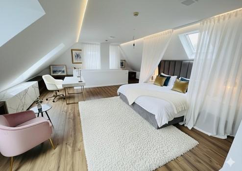 Über eine offen gestaltete Treppe erreichen Sie das Obergeschoss der Wohnung. Hier befindet sich ein rund 60 m² großes, offenes Studio. Dieser Bereich eignet sich gut für Homeoffice, Arbeiten, Hobby oder als private Rückzugszone. Die offene Bauweise verleiht der Wohnung einen loftartigen Charakter.