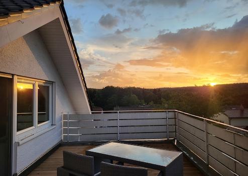 •Weitblick nach Westen und sonniger Balkon mit Abendsonne