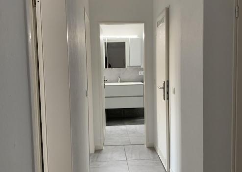 Die Wohnung wurde vor drei Jahren umfassend kernsaniert, sowie mit hochwertigen Materialien modernisiert und jetzt nochmal frisch renoviert. Der Boden im Flur, Badezimmer, Gäste-WC und der Küche wurde mit eleganten neuen Fliesen verlegt, während im Wohnbereich und Schlafzimmer Laminat verlegt wurde.