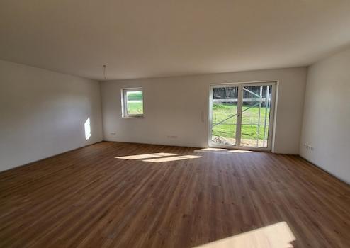 Auf der großzügigen und lichtdurchfluteten Wohnfläche des EG verteilt sich der Koch-, Ess- und Wohnbereich. Des Weiteren ist eine Speisekammer sowie ein Gäste-WC vorhanden. Über den Wohnbereich erreichen Sie die komplett überdachte Terrasse mit unverbauten Blick auf den Wald.