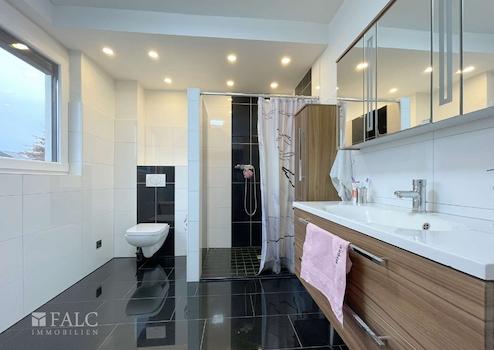 Im Bereich der potenziell als Einliegerwohnung nutzbaren Räume im Kellergeschoss sind bereits eine Küche sowie ein Badezimmer mit bodentiefer Dusche vorhanden, wodurch eine spätere Nutzung als separate Wohneinheit möglich ist. Der Zugang erfolgt über einen separaten Außeneingang, der die Nutzung unabhängig vom Hauptbereich ermöglicht.