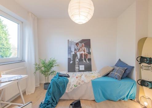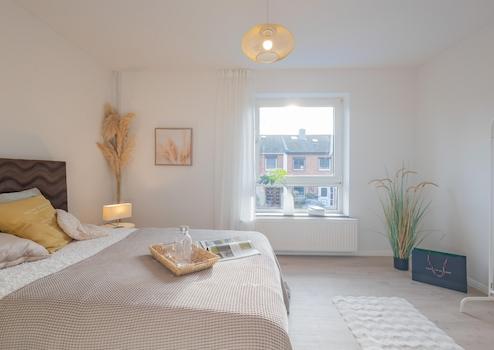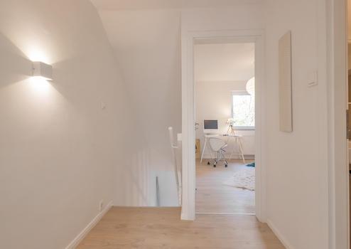 Im Obergeschoss befinden sich zwei gut geschnittene Schlafzimmer, die sich ideal als Eltern- und Kinderzimmer eignen, sowie ein modernes Badezimmer mit Badewanne. Die Räume überzeugen durch ihre Helligkeit und flexible Möblierbarkeit.