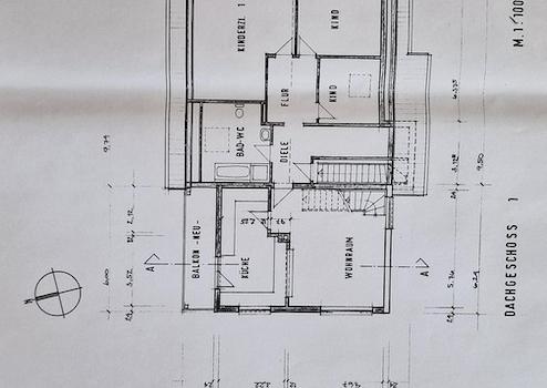 Die Wohnung wurde 1990 ausgebaut und 2011 aufgestockt und mit 56 qm in energieeffizienter Bauweise erweitert.