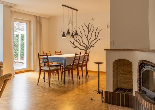 Diese charmante Doppelhaushälfte überzeugt durch ihre ruhige, begehrte Lage, ein großzügiges Grundstück und einen wunderbar eingewachsenen Garten mit Westausrichtung. Hinter dem Haus öffnet sich eine angrenzende Grünfläche, die für viel Privatsphäre und Sonne sorgt. Das Haus ist in Massivbauweise errichtet und wurde 1985 mit einem Vollwärmeschutz gedämmt. Die Öl-Heizung aus 2023 verfügt über einen Außentank. Im Erdgeschoss wurden die Holzböden kürzlich erneuert und verleihen den Wohnräumen eine warme, zeitlose Atmosphäre. Ein Kaminofen im Wohnzimmer sorgt zusätzlich für Behaglichkeit.