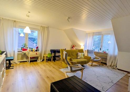 Diese attraktive Dachgeschosswohnung überzeugt durch einen durchdachten Grundriss, helle Räume und eine angenehme Wohnatmosphäre. Über den zentralen Flur sind sämtliche Räume bequem erreichbar, was die Wohnung besonders familienfreundlich und funktional macht.