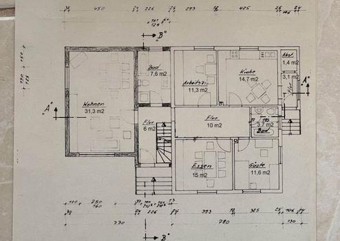 Hier erwartet Sie ein großes Haus mit 230-310 qm Wohnfläche, das 1958 erbaut und 1990 fast verdoppelt wurde. Mit der Erweiterung wurden das komplette Dach, Fenster und der Außenputz erneuert.