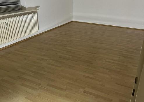 Die Wohnung hat im Küchenbereich Fliesen und in den Schlafzimmern Laminat und einen Design Plankenbelag.