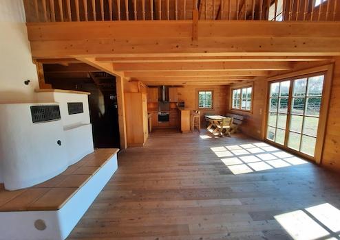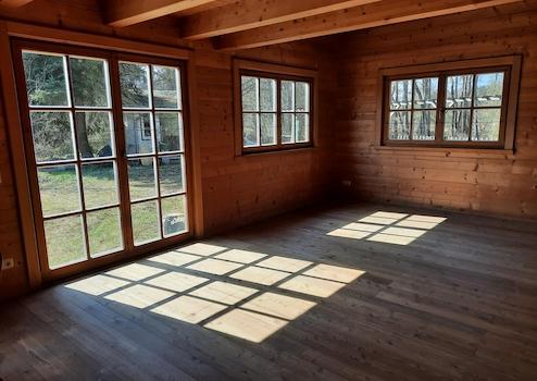 Das 2007 erbaute Blockbohlen-Holzhaus steht am Ende der Straße an einem Seitenarm der Havel in der wunderschönen Gemeinde Birkenwerder. Der unverbaute Blick zum Wasser, und nach hinten auf eine große Wiese, lassen dem Hausbesitzer ein Gefühl von Urlaub in der Natur erleben. Der idyllisch gelegene hauseigene Bade- und Angelsteg verstärkt noch einmal diesen Eindruck, im Einklang mit der Natur zu leben. Das 840m² große Grundstück mit einem zusätzlichen kleinen Bungalow bietet dem Käufer noch Möglichkeiten, um sich zu verwirklichen. Die Hochbeete, Wege und Stellflächen sind aus Naturstein gebaut. Ein hauseigener Gartenbrunnen ist ebenfalls vorhanden. Das Blockbohlenhaus wurde maßgeblich nach den Vorgaben von allergiefreiem Wohnen gebaut und innen mit Verwendung von schadstofffreien Naturmaterialien ausgestattet.