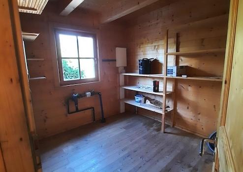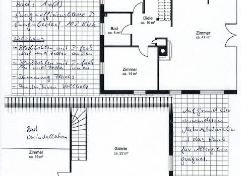 Das Haus ist nach 18 Jahren in einem guten Zustand und sofort einzugsbereit. Jedoch besteht an einigen Stellen Sanierungs- und Reparaturbedarf. Die entsprechenden Kostenvoranschläge liegen als Kalkulationgrundlage vor. Das 2. Badezimmer im OG müsste ausgebaut werden, die Anschlüsse, sogar für eine Sauna, liegen an. Die Außenfassade müsste geölt werden.
