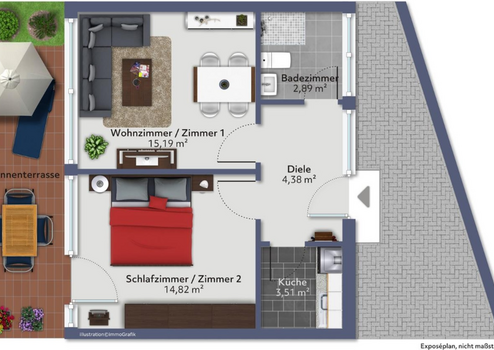 Besonderes Merkmal ist die große sonnenverwöhnte Terrasse! Darüber hinaus ist das ruhige Hinterhaus in der Trierer Straße bereits wärmegedämmt und beheizt durch zukunftsorientierte Fernwärme!