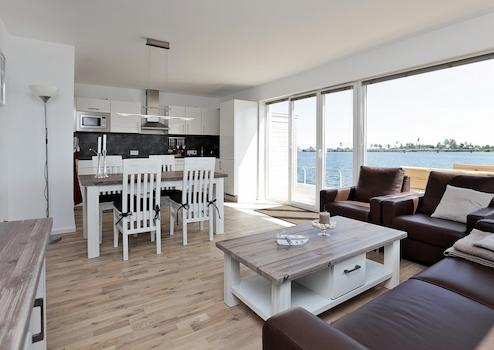 Die schöne und vollmöblierte Ferienwohnung befindet sich im nördlichen ruhigeren Teil des Ostseeresort Olpenitz im Erdgeschoss eines 4-Parteien-Hauses (Baujahr 2014 / 2015), welches auf einen Kaianleger gebaut wurde. Die Wohnung besticht durch eine 1a Lage, da sie zwischen Schlei und Ostsee liegt und einen unverbaubaren Wasserblick zu beiden Seiten hat. Die große, nach Süden ausgerichtete, Terrasse grenzt direkt an das Wasser und bietet einen herrlichen Blick auf den Yachthafen. Die wunderschöne Badebucht im Ostseeresort Olpenitz ist nur wenige Gehminuten entfernt. Das Interieur ist im maritimen Design gehalten und für die Vermietung an Feriengäste ausgelegt. Das gesamte Inventar und das Mobiliar sind im Kaufpreis enthalten. Die Wohnung wurde in den letzten 10 Jahren an wechselnde Feriengäste vermietet und erzielte dabei immer überdurchschnittlich viele Vermiettage.
