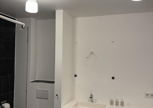 - moderne, weiß verputzte Wände