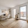 Zusätzlich führt auch das Büro, Kinderzimmer oder Gästezimmer mit bodentiefen Fenstern auf die Loggia, was für eine noch intensivere Verbindung von Innen- und Außenbereich sorgt. Die Wohnung besticht durch ihre klare, moderne Gestaltung und die viel Licht durchfluteten Räume.