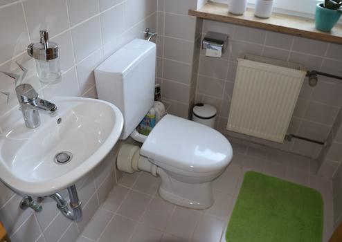 Im Erdgeschoß und im Dachgeschoss befindet sich jeweils ein Badezimmer mit Badewanne und eine Küche. Im Keller ist eine weitere Toilette vorhanden.