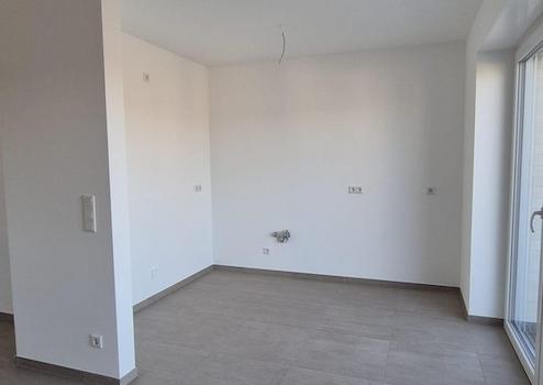 In dem Wohn- Essbereich haben Sie Zugang zu Ihrer offenen Küche (Küche anzuschaffen vom Mieter) und haben von hier einen perfekten Blick auf den Balkon und nach draußen.