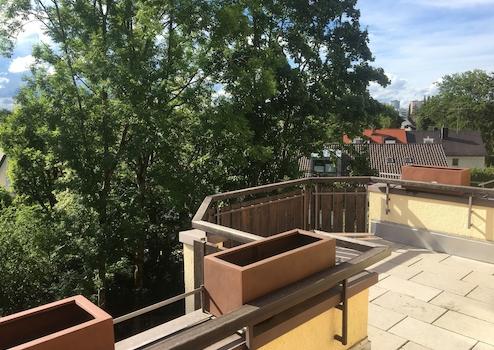 Die wunderschöne Dachterrassenwohnung befindet sich im 3. Obergeschoss einer kleinen, ruhigen Wohnanlage mit 11 Wohnungen. Das Haus wurde 2012 saniert bzw. modernisiert. Sie betreten die Wohnung durch eine große Diele, die gleichzeitig als Essecke oder Büro genutzt werden kann. Die Schreinerküche ist mit Markengeräten ausgestattet. Schlaf- und Wohnzimmer befinden sich auf der Gartenseite (Westen) mit Blick über die Dächer von Solln. Durch die unverbaute Sicht sind die Räume ausgesprochen lichtdurchflutet. Die ca. 20 qm große, uneinsehbare Dachterrasse erreicht man über das Wohnzimmer. Im großzügigen Schlafzimmer bietet ein 7-türiger Einbauschrank viel Platz. Diele, Wohn- und Schlafzimmer sind mit Eichenparkett ausgestattet. Bad und WC sind räumlich getrennt. Die Wohnung besitzt eine sehr nützliche Abstellkammer. Ein separates Kellerabteil sowie ein Tiefgaragenstellplatz runden das Angebot ab. Eine Waschküche mit Mielegeräten, sowie ein Trockenraum können genutzt werden.