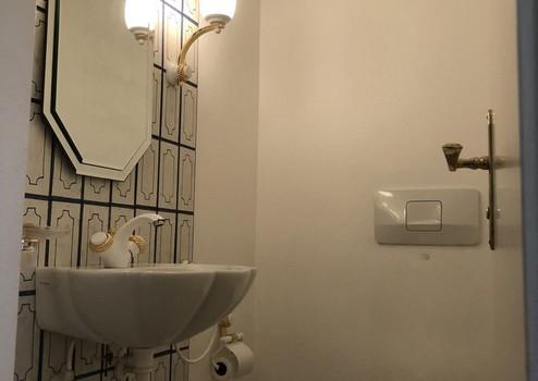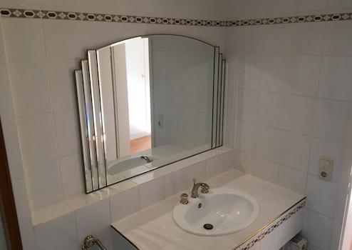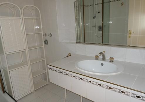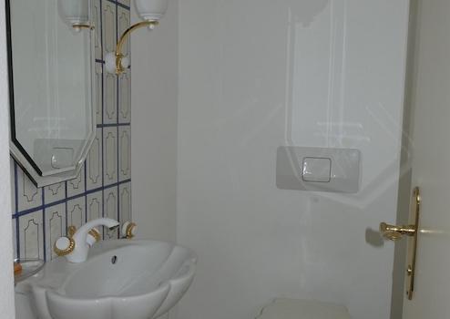 - hochwertige Fliesen und Armaturen mit Waschtisch im Bad