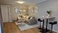 - Großzügiges Wohnzimmer mit eleganter Lounge-Ecke, Smart-TV und Zugang zur kleinen Sitzgelegenheit im Freien